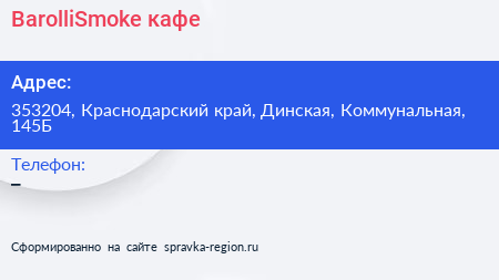 BarolliSmoke, кафе по адресу 353204, Краснодарский край, Динская, Коммунальная, 145Б в дальнейшем Организация, размещена в следующих категориях: