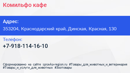 Комильфо, кафе по адресу 353204, Краснодарский край, Динская, Красная, 130 в дальнейшем Организация, размещена в следующих категориях:
