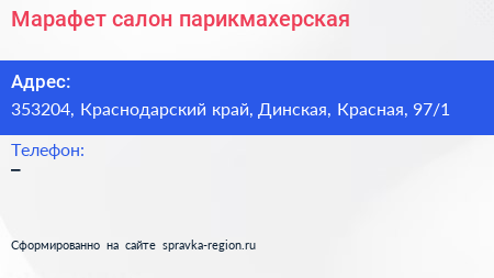 Марафет, салон-парикмахерская по адресу 353204, Краснодарский край, Динская, Красная, 97/1 в дальнейшем Организация, размещена в следующих категориях: