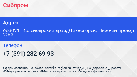 Сибпром по адресу 663091, Красноярский край, Дивногорск, Нижний проезд, 20/3 в дальнейшем Организация, размещена в следующих категориях: