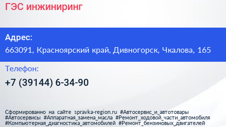 ГЭС-инжиниринг по адресу 663091, Красноярский край, Дивногорск, Чкалова, 165 в дальнейшем Организация, размещена в следующих категориях: