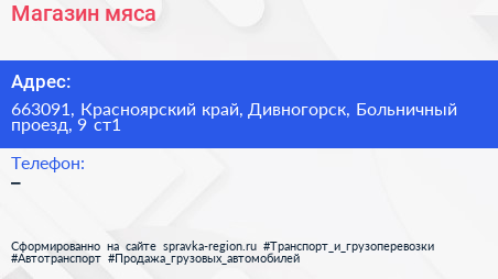 Магазин мяса по адресу 663091, Красноярский край, Дивногорск, Больничный проезд, 9 ст1 в дальнейшем Организация, размещена в следующих категориях: