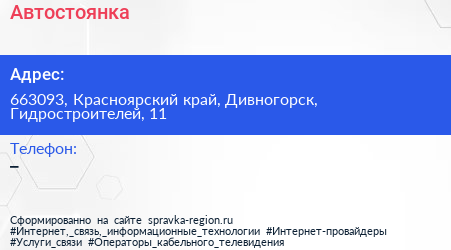 Автостоянка по адресу 663093, Красноярский край, Дивногорск, Гидростроителей, 11 в дальнейшем Организация, размещена в следующих категориях:
