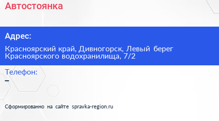 Автостоянка по адресу Красноярский край, Дивногорск, Левый берег Красноярского водохранилища, 7/2 в дальнейшем Организация, размещена в следующих категориях: