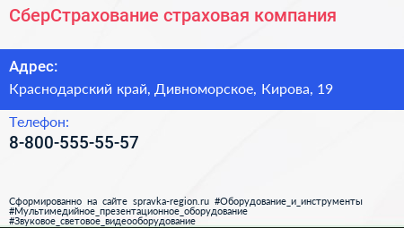 СберСтрахование, страховая компания по адресу Краснодарский край, Дивноморское, Кирова, 19 в дальнейшем Организация, размещена в следующих категориях: