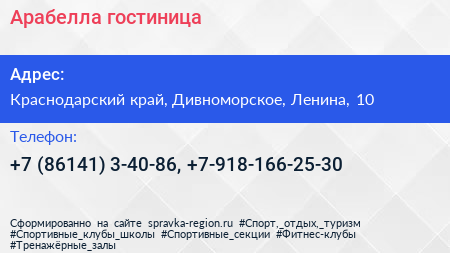 Арабелла, гостиница по адресу Краснодарский край, Дивноморское, Ленина, 10 в дальнейшем Организация, размещена в следующих категориях: