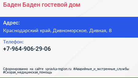 Баден Баден, гостевой дом по адресу Краснодарский край, Дивноморское, Дивная, 8 в дальнейшем Организация, размещена в следующих категориях: