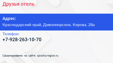 Друзья, отель по адресу Краснодарский край, Дивноморское, Кирова, 28а в дальнейшем Организация, размещена в следующих категориях: