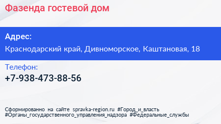 Для связи с организацией воспользуйтесь номером телефона: +7-938-473-88-56.
