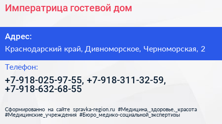 Императрица, гостевой дом по адресу Краснодарский край, Дивноморское, Черноморская, 2 в дальнейшем Организация, размещена в следующих категориях: