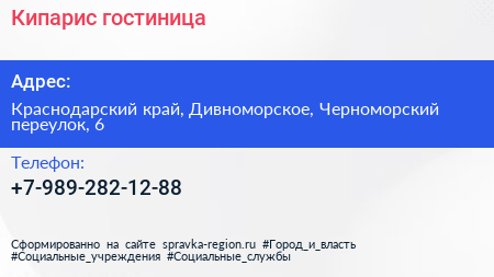 Кипарис, гостиница по адресу Краснодарский край, Дивноморское, Черноморский переулок, 6 в дальнейшем Организация, размещена в следующих категориях: