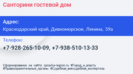 Санторини, гостевой дом по адресу Краснодарский край, Дивноморское, Ленина, 59а в дальнейшем Организация, размещена в следующих категориях: