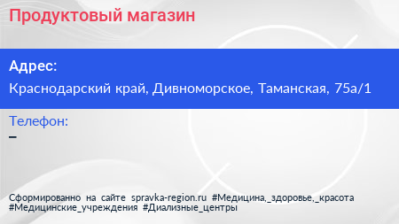 Продуктовый магазин по адресу Краснодарский край, Дивноморское, Таманская, 75а/1 в дальнейшем Организация, размещена в следующих категориях: