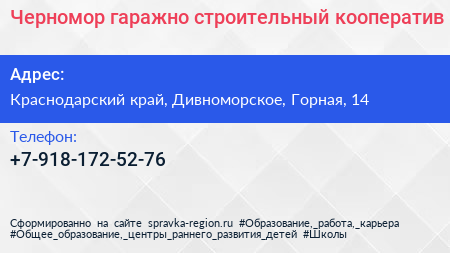 Черномор, гаражно-строительный кооператив по адресу Краснодарский край, Дивноморское, Горная, 14 в дальнейшем Организация, размещена в следующих категориях:
