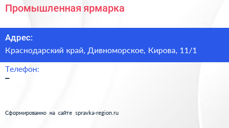 Промышленная ярмарка по адресу Краснодарский край, Дивноморское, Кирова, 11/1 в дальнейшем Организация, размещена в следующих категориях: