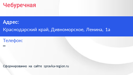 Чебуречная по адресу Краснодарский край, Дивноморское, Ленина, 1а в дальнейшем Организация, размещена в следующих категориях: