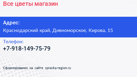 Все цветы, магазин по адресу Краснодарский край, Дивноморское, Кирова, 15 в дальнейшем Организация, размещена в следующих категориях: