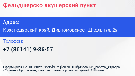 Фельдшерско-акушерский пункт по адресу Краснодарский край, Дивноморское, Школьная, 2а в дальнейшем Организация, размещена в следующих категориях: