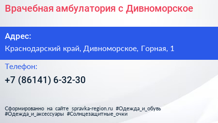Врачебная амбулатория, с. Дивноморское по адресу Краснодарский край, Дивноморское, Горная, 1 в дальнейшем Организация, размещена в следующих категориях: