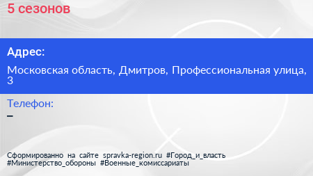 5 сезонов по адресу Московская область, Дмитров, Профессиональная улица, 3 в дальнейшем Организация, размещена в следующих категориях: