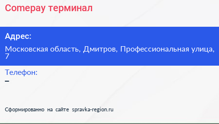 Comepay, терминал по адресу Московская область, Дмитров, Профессиональная улица, 7 в дальнейшем Организация, размещена в следующих категориях: