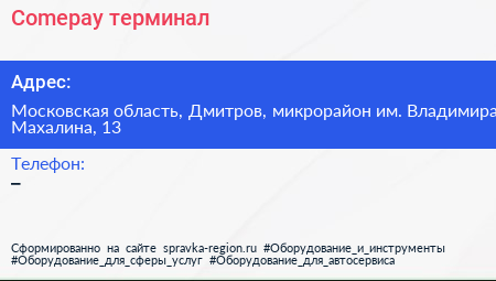 Comepay, терминал по адресу Московская область, Дмитров, микрорайон им. Владимира Махалина, 13 в дальнейшем Организация, размещена в следующих категориях: