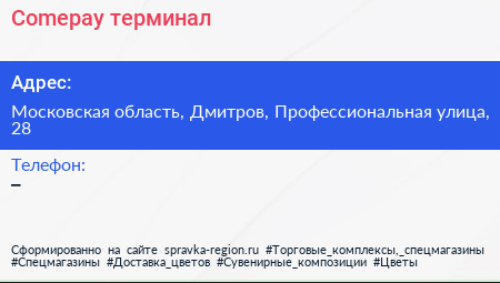Comepay, терминал по адресу Московская область, Дмитров, Профессиональная улица, 28 в дальнейшем Организация, размещена в следующих категориях: