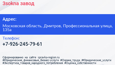 3sokna, завод по адресу Московская область, Дмитров, Профессиональная улица, 135а в дальнейшем Организация, размещена в следующих категориях: