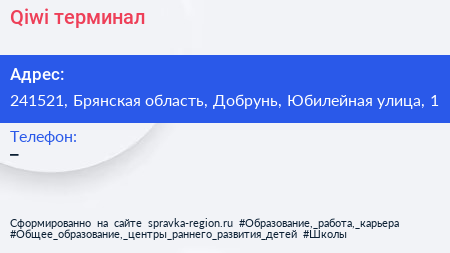 Qiwi, терминал по адресу 241521, Брянская область, Добрунь, Юбилейная улица, 1 в дальнейшем Организация, размещена в следующих категориях: