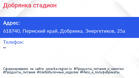 Добрянка, стадион по адресу 618740, Пермский край, Добрянка, Энергетиков, 25а в дальнейшем Организация, размещена в следующих категориях: