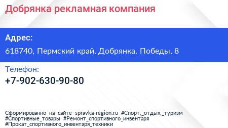 Добрянка, рекламная компания по адресу 618740, Пермский край, Добрянка, Победы, 8 в дальнейшем Организация, размещена в следующих категориях: