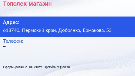 Тополек, магазин по адресу 618740, Пермский край, Добрянка, Ермакова, 53 в дальнейшем Организация, размещена в следующих категориях: