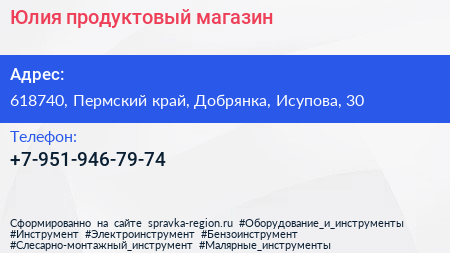 Юлия, продуктовый магазин по адресу 618740, Пермский край, Добрянка, Исупова, 30 в дальнейшем Организация, размещена в следующих категориях:
