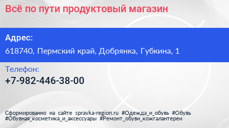 Всё по пути, продуктовый магазин по адресу 618740, Пермский край, Добрянка, Губкина, 1 в дальнейшем Организация, размещена в следующих категориях: