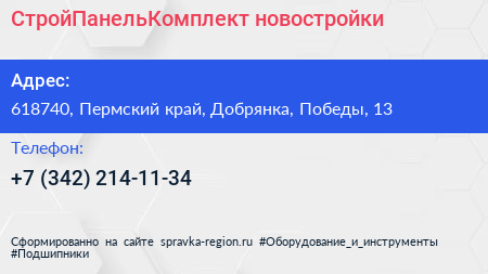 СтройПанельКомплект, новостройки по адресу 618740, Пермский край, Добрянка, Победы, 13 в дальнейшем Организация, размещена в следующих категориях: