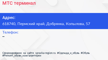 МТС, терминал по адресу 618740, Пермский край, Добрянка, Копылова, 57 в дальнейшем Организация, размещена в следующих категориях:
