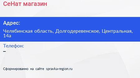 СеНат, магазин по адресу Челябинская область, Долгодеревенское, Центральная, 14а в дальнейшем Организация, размещена в следующих категориях: