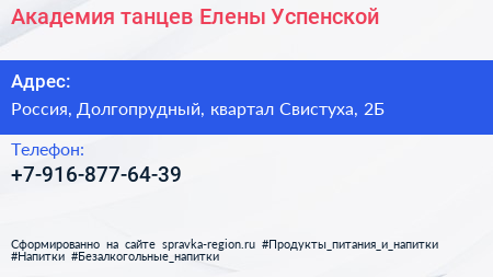 Академия танцев Елены Успенской по адресу Школа № 30, Набережный проезд, Жилой комплекс «Город набережных», Химки, городской округ Химки, Московская область, Центральный федеральный округ, 141432, Россия в дальнейшем Организация, размещена в следующих категориях: