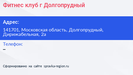 Фитнес-клуб, г. Долгопрудный по адресу 141701, Московская область, Долгопрудный, Дирижабельная, 2а в дальнейшем Организация, размещена в следующих категориях: