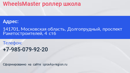 WheelsMaster, роллер школа по адресу 141701, Московская область, Долгопрудный, проспект Ракетостроителей, 4 ст6 в дальнейшем Организация, размещена в следующих категориях: