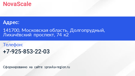 NovaScale по адресу 141700, Московская область, Долгопрудный, Лихачёвский проспект, 74 к2 в дальнейшем Организация, размещена в следующих категориях:
