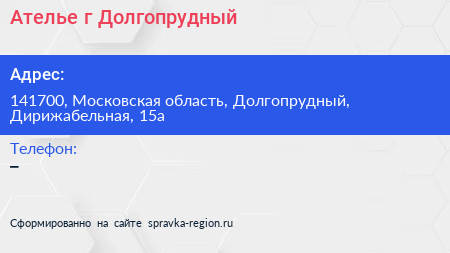 Ателье, г. Долгопрудный по адресу 141700, Московская область, Долгопрудный, Дирижабельная, 15а в дальнейшем Организация, размещена в следующих категориях: