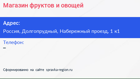 Магазин фруктов и овощей по адресу Авокадо, 1 к1, Набережный проезд, Жилой комплекс «Город набережных», Химки, городской округ Химки, Московская область, Центральный федеральный округ, 141402, Россия в дальнейшем Организация, размещена в следующих категориях: