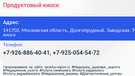 Продуктовый киоск по адресу 141702, Московская область, Долгопрудный, Заводская, 9 киоск в дальнейшем Организация, размещена в следующих категориях: