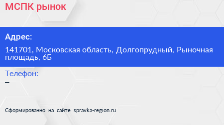 МСПК, рынок по адресу 141701, Московская область, Долгопрудный, Рыночная площадь, 6Б в дальнейшем Организация, размещена в следующих категориях: