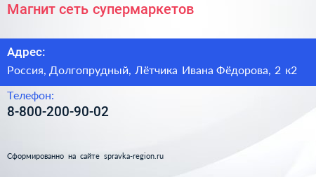 Магнит, сеть супермаркетов по адресу 2 к2, улица Лётчика Ивана Фёдорова, Жилой комплекс «Город набережных», Химки, городской округ Химки, Московская область, Центральный федеральный округ, 141402, Россия в дальнейшем Организация, размещена в следующих категориях: