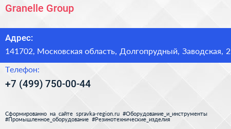 Granelle Group по адресу 141702, Московская область, Долгопрудный, Заводская, 2 в дальнейшем Организация, размещена в следующих категориях: