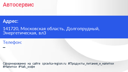Автосервис по адресу 141720, Московская область, Долгопрудный, Энергетическая, вл3 в дальнейшем Организация, размещена в следующих категориях: