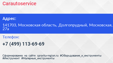 Carautoservice по адресу 141703, Московская область, Долгопрудный, Московская, 27а в дальнейшем Организация, размещена в следующих категориях: