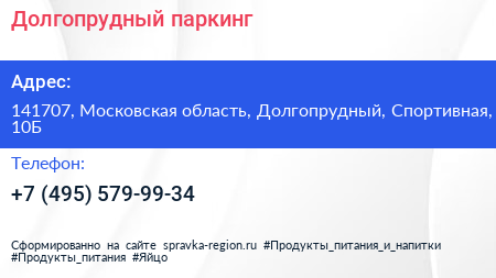 Долгопрудный паркинг по адресу 141707, Московская область, Долгопрудный, Спортивная, 10Б в дальнейшем Организация, размещена в следующих категориях: